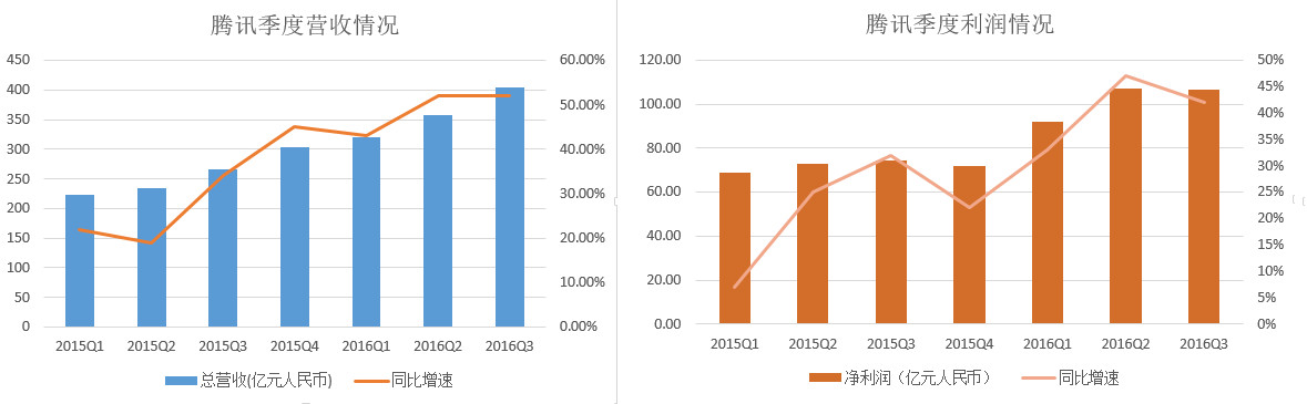 This evening, Tencent released today's unaudited third quarter earnings report. The report shows that Tencent's total revenue in the third quarter increased by 52% year-on-year, the same growth rate as the previous quarter; net profit growth has declined.